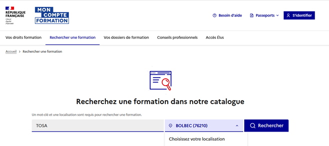 sur le site www.moncompteformation.fr en utilisant la zone "recherchez une formation" puis saisir