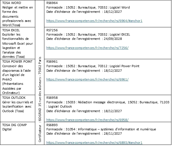 d'atteindre le niveau de maîtrise des applications bureautiques les plus couramment utilisées en milieu professionnel (traitement de texte, tableur, présentation, messagerie...)